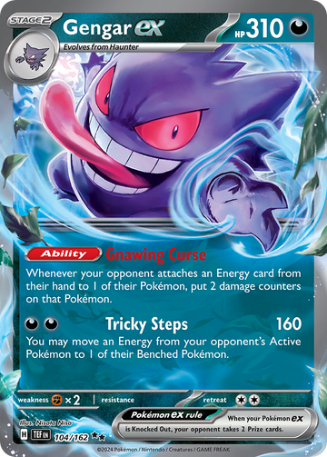 Pokémon kaart 104/162 - Gengar ex - [Double Rare]. Een 'Double Rare'-kaart uit de serie...